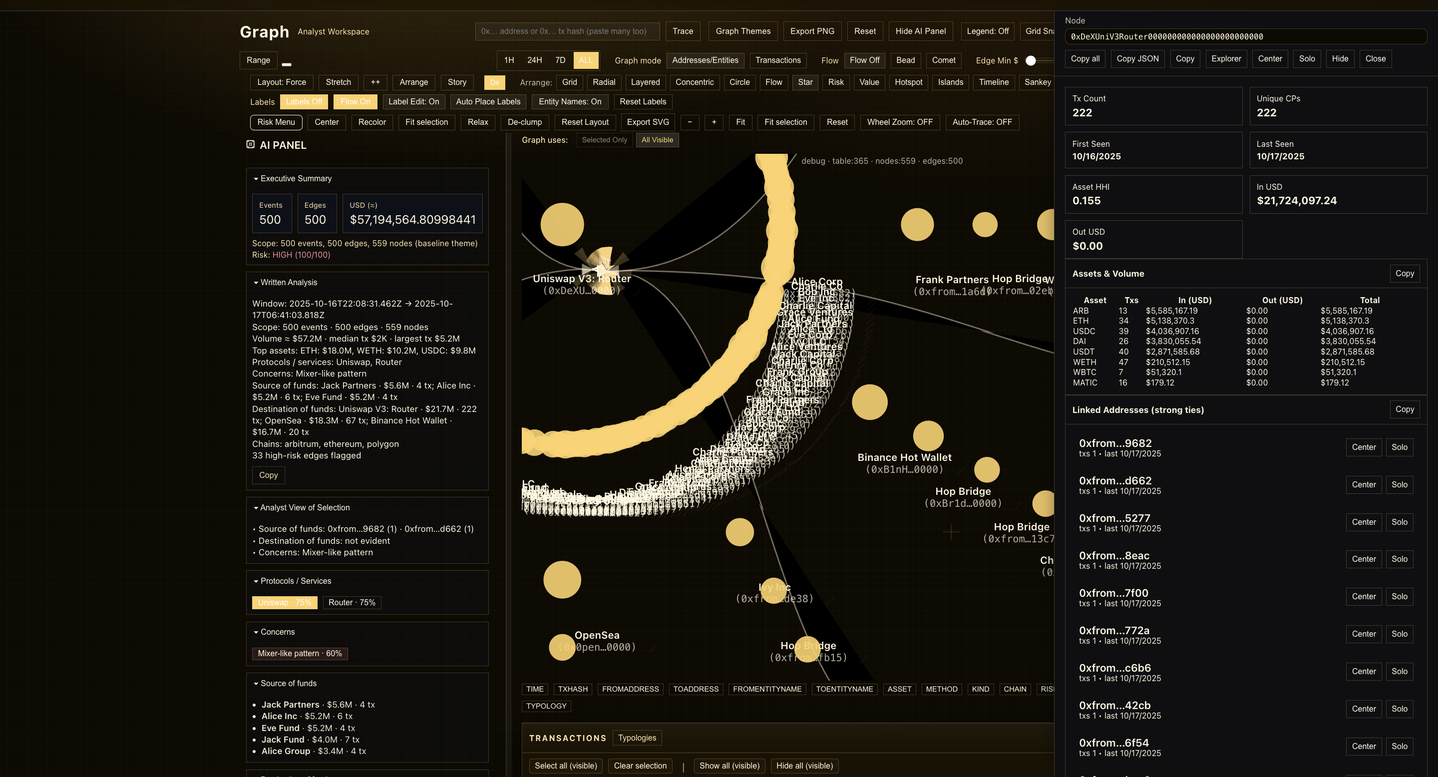 For investigators, compliance officers, and law-enforcement teams, Graph is where provenance becomes documentation suitable for affidavits, SARs, and briefings.